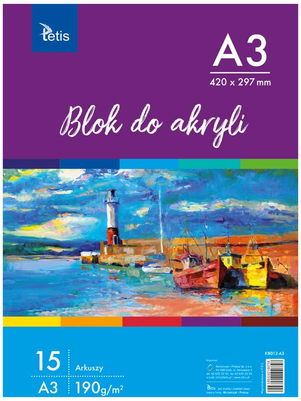 Blok do akryli A3, 190g/m2, 15ark., Tetis