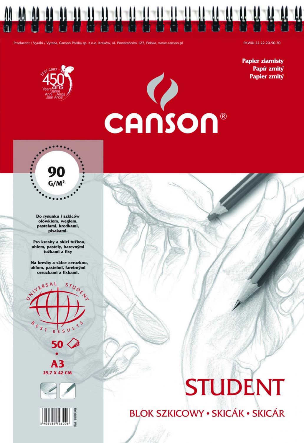/ Blok szkicowy A3 50 k. 90g Student na spirali, Canson