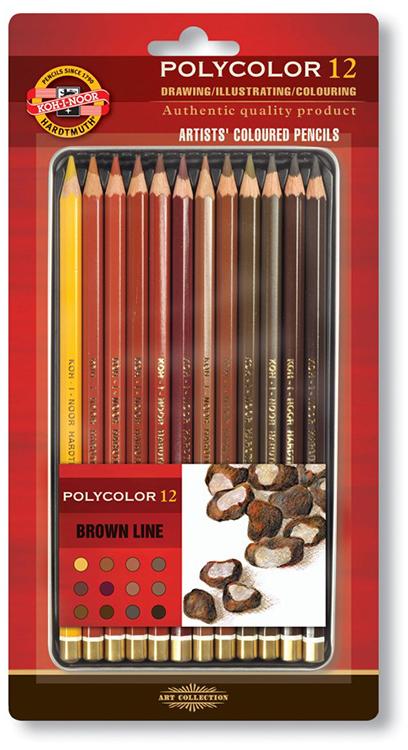 Kredki 12-kol. Polycolor linia brązy 3822 pud-metal, Koh-I-Noor