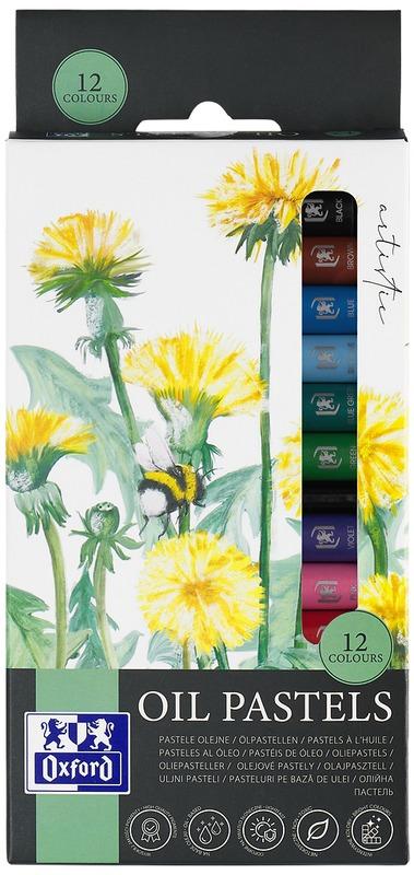 Pastele olejne Oxford to bogate kolorystycznie narzędzia rysunkowe o miękkiej, maślanej konsystencji. Są doskonałe do mieszania kolorów i mogą być używane na wielu podłożach zarówno gładkich jak i chropowatych. Odpowiednie do papieru, tektury, podobrazi, tablic malarskich, szkła i wielu innych. Do uzyskania efektu rozmycia lub nadania połysku można użyć terpentyny lub innych właściwych mediów olejnych. Idealne do ilustracji, szablonów, wydrapywania, mieszania kolorów, kropkowania oraz impasto. Świetnie współgrają w przypadku użycia odpowiednich technik, takich jak „sgraffito”, polegającej na wydrapywaniu wg wzoru kolejnych warstw pasteli, w celu uzyskania zdobienia. Pastele olejne mają w swoim składzie dużą ilość spoiwa w postaci wosku i oleju, co pozwala miękko i gładko prowadzić je po podłożu Wysokiej jakości pigmenty sprawiają, że kolory są trwałe i intensywne Dzięki zastosowaniu oleju konsystencja kredek jest gładka i miękka, a to zapobiega ich kruszeniu Pastele są odporne na światło słoneczne, przez co namalowane prace pozostają wyraźne i intensywne w kolorze Konsystencja pasteli umożliwia łatwe i efektywne mieszanie kolorów oraz cieniowanie Pastele olejne umożliwiają otrzymanie różnego efektu intensywności koloru w zależności od siły nacisku