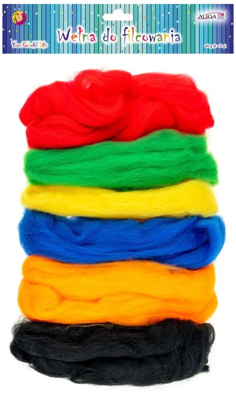 Wełna do filcowania. Opakowanie zawiera 48g (6 kolorów x 8g).
